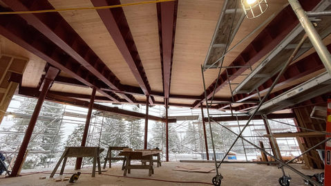 An ambitious 18’ cantilever roof eave and expansive open plan living resulted in an extensive steel support frame with complete Cross Laminated Timber roof framing above. View side floor to ceiling glazing drove a challenging seismic lateral design utilising a mix of timber framed shear walls, moment frames and cantilevered concrete filled hollow steel section columns.